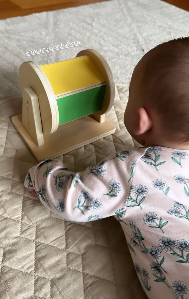 There is just enough tension on the rotation of the Rainbow Drum to make it a satisfying spin with each tap while also slowing down quickly enough to encourage repetition. This is a really important detail, as some spinning toys have a very loose rotation that spins very quickly or for a prolonged period with each prompt. This can mean that the baby's attention wanders before the motion stops, and they lose interest. With the Rainbow Drum, I find that the slower pace and briefer duration of its spin means that babies are more engaged with repeating the action again and again to continue the motion.