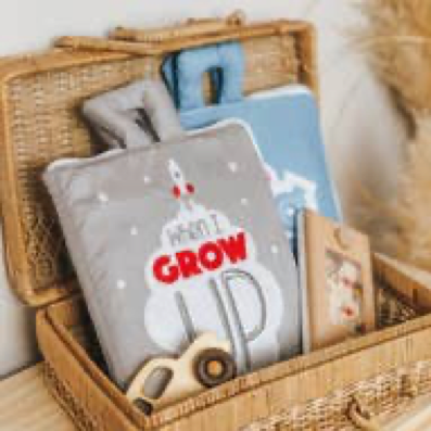 This delightful fabric activity book encourages hands-on exploration while also inspiring imagination. Each page is centred around a different potential occupation, with an associated activity for the child to work on. The jobs include a mail carrier, astronaut, famer, chef, builder, artist and fire fighter. All of these are presented as entirely gender neutral, encouraging all children to visualise themselves in a variety of possible jobs! As the child's hands busily work on the fine motor tasks, they can also think and talk about these occupations and their associated roles and responsibilities.