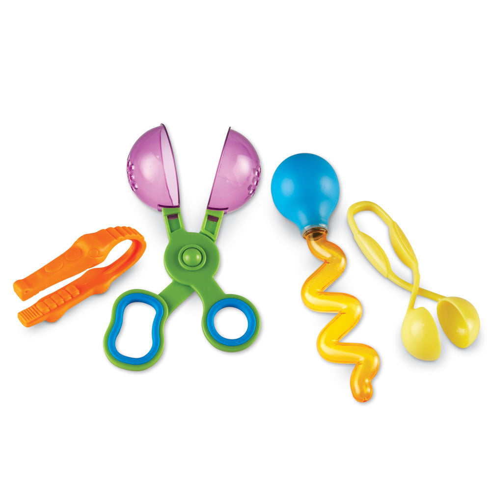 The Helping Hands set offers a convenient collection of four engaging and interesting tools to encourage fine motor coordination and control.