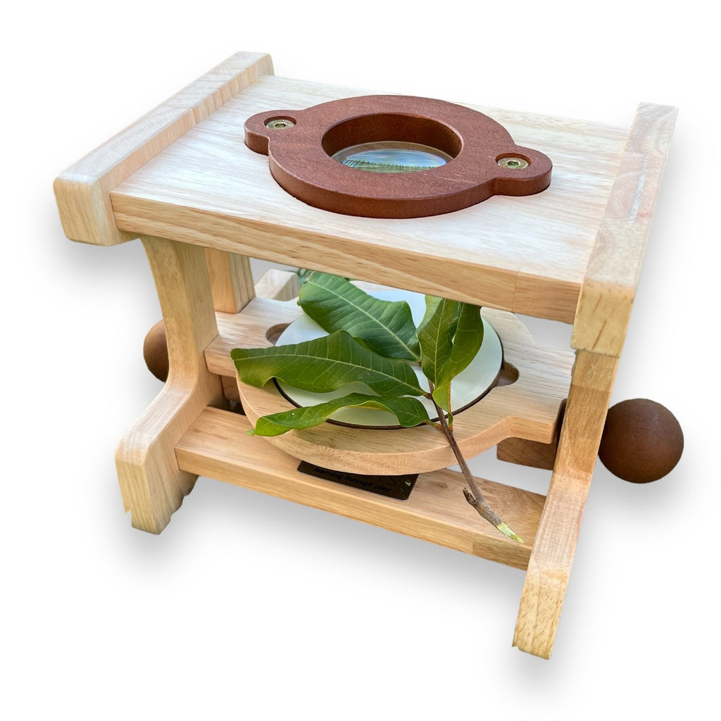 Please be aware that the Wooden Microscope is an educational tool, not a precision instrument. It is designed to offer an engaging and hands-on introduction to the idea of microscopy, but is not intended to be used for formal scientific lessons on the microscopic world.