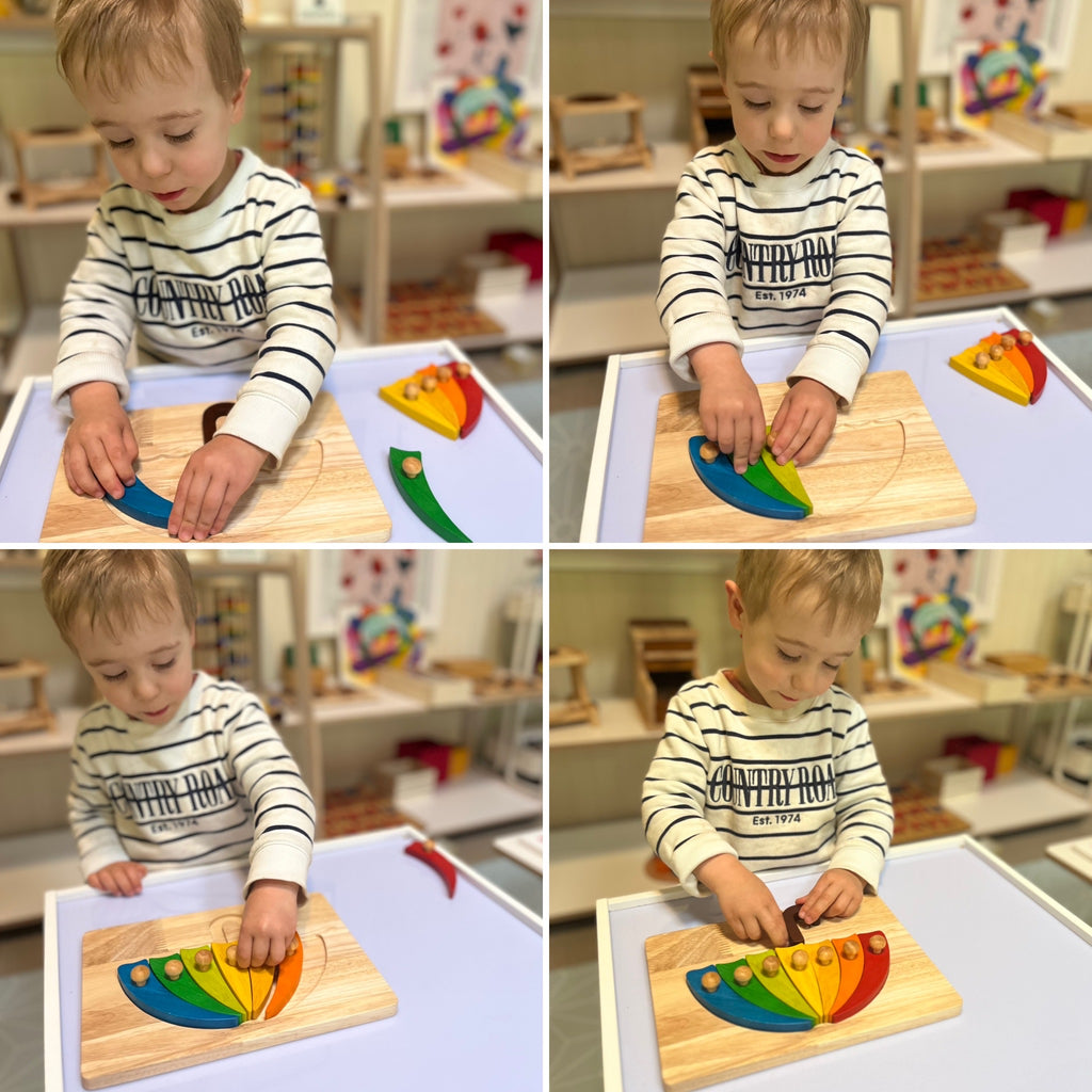 The Colourful Umbrella Puzzle is the perfect addition to a prepared environment to provide a fun experience for the mind and the hands!