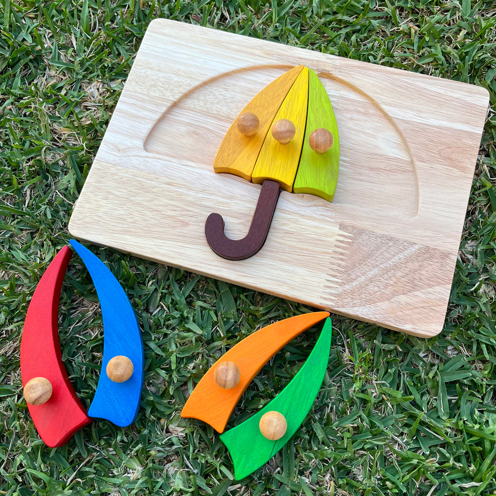 Puzzles offer opportunities for problem-solving, persistence and patience. The striking hues on this Colourful Umbrella Puzzle offers the perfect point of interest to inspire a child to get hands-on!