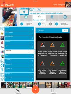The photos below show how Montessori GPS was embedded into KeptMe. This is just one example of how the curriculum could be integrated into a range of platforms or programs, such as Xplor's Playground.