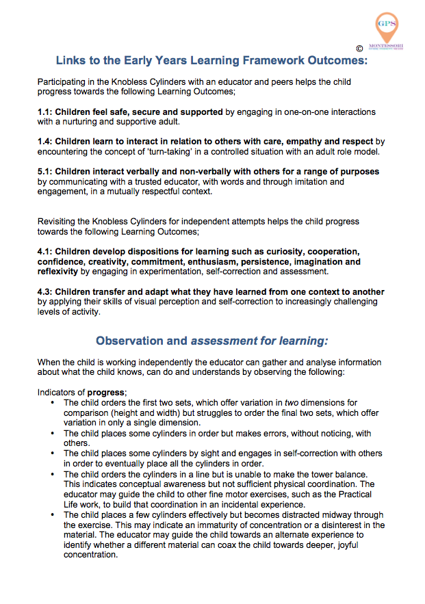 • Montessori GPS is a bridge between the Montessori school, the family and NQS Assessors as it showcases the Montessori curriculum and its links to the home and the EYLF in a way that is convenient for the educator and authentic to the Montessori philosophy.
