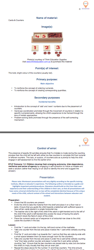 • These guides are not intended as a substitute for formal training. Access to lesson guides is not considered sufficient ‘preparation of the adult’ and an educator should not consider (or claim) himself/herself “Montessori trained” simply because he/she has access to these guides.