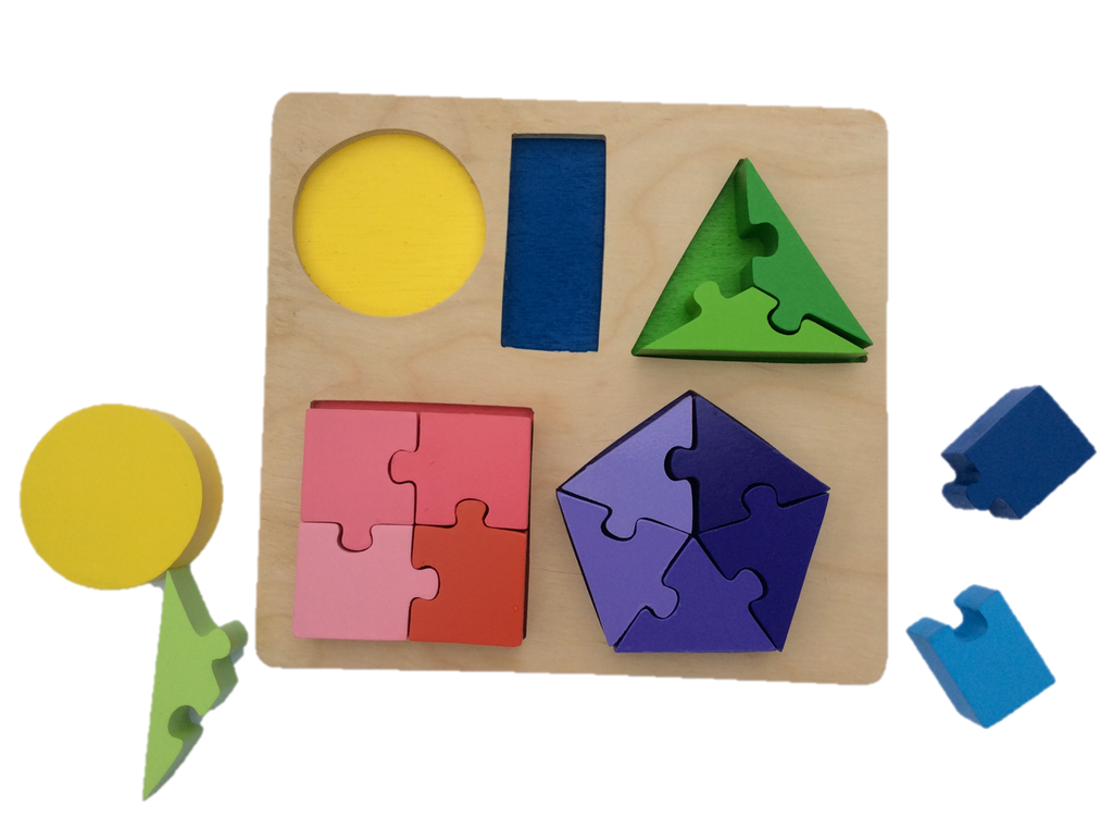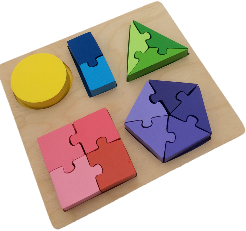 In addition to aiding explorations of fractions, the puzzle also facilitates investigations of colour, shades and shapes. A child who is working independently will be absorbing visual perception of these characteristics. When an adult is working with a child it offers a wonderful opportunity to introduce the language associated with these shapes (circle, rectangle, triangle, square, pentagon) and with the colours (yellow, blue, green, red/pink, purple) and even the varying shades of those colours (light/dark, lighter/darker, lightest/darkest).